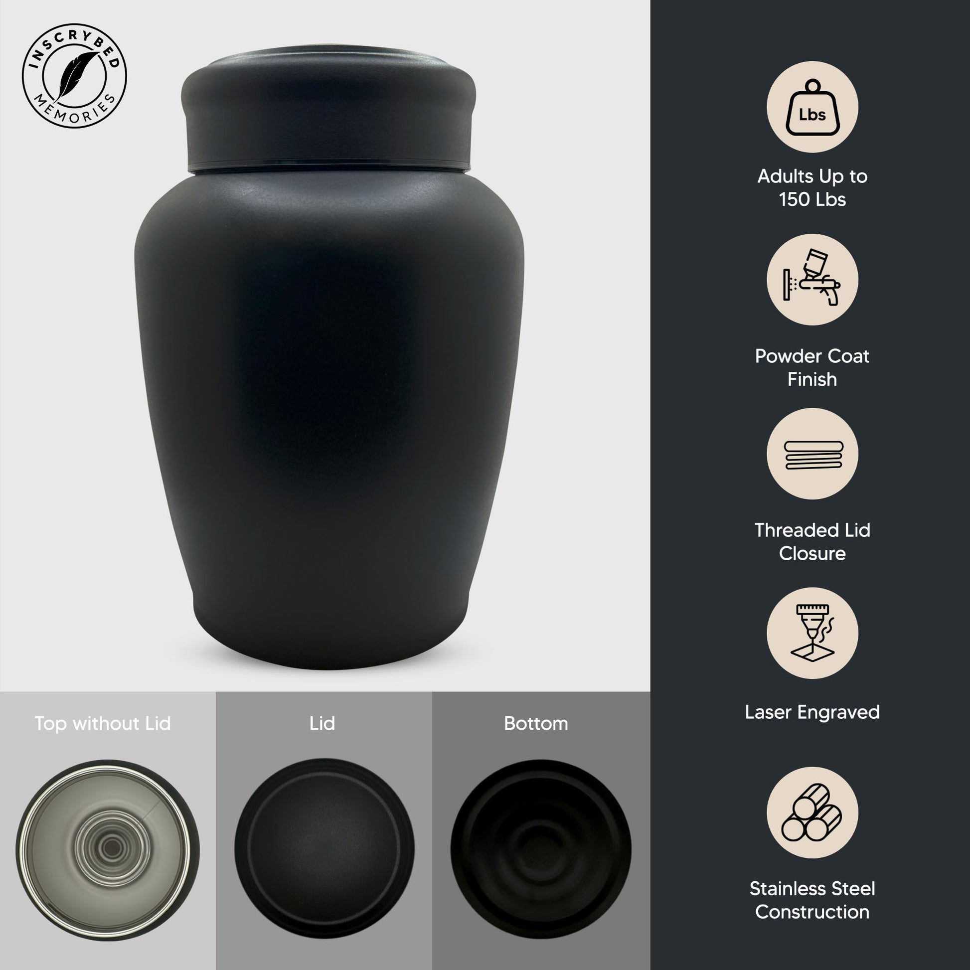 Crafted with meticulous attention to detail, this urn is made from high-quality stainless steel with a durable powder-coated finish, offering both strength and an elegant appearance designed to last. -