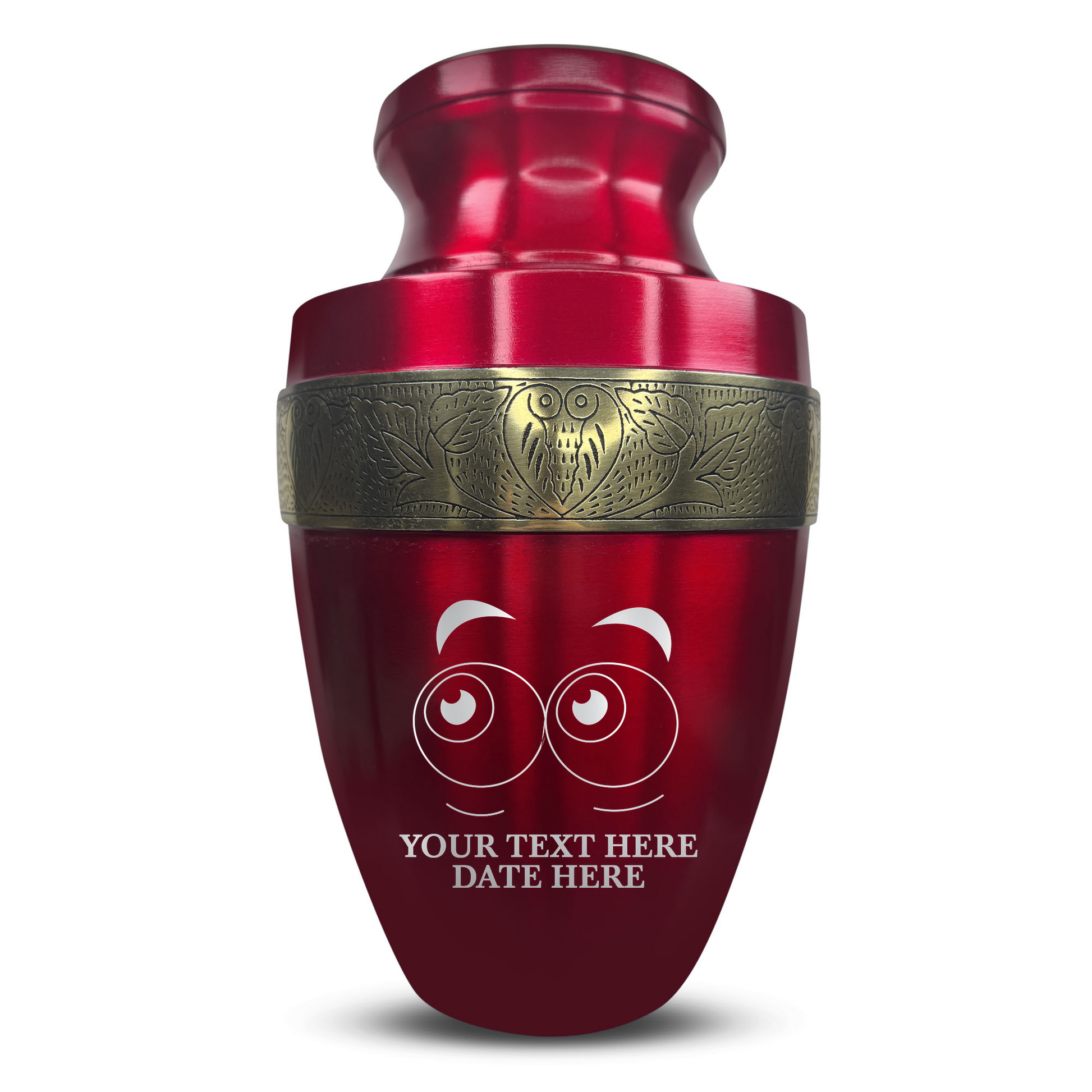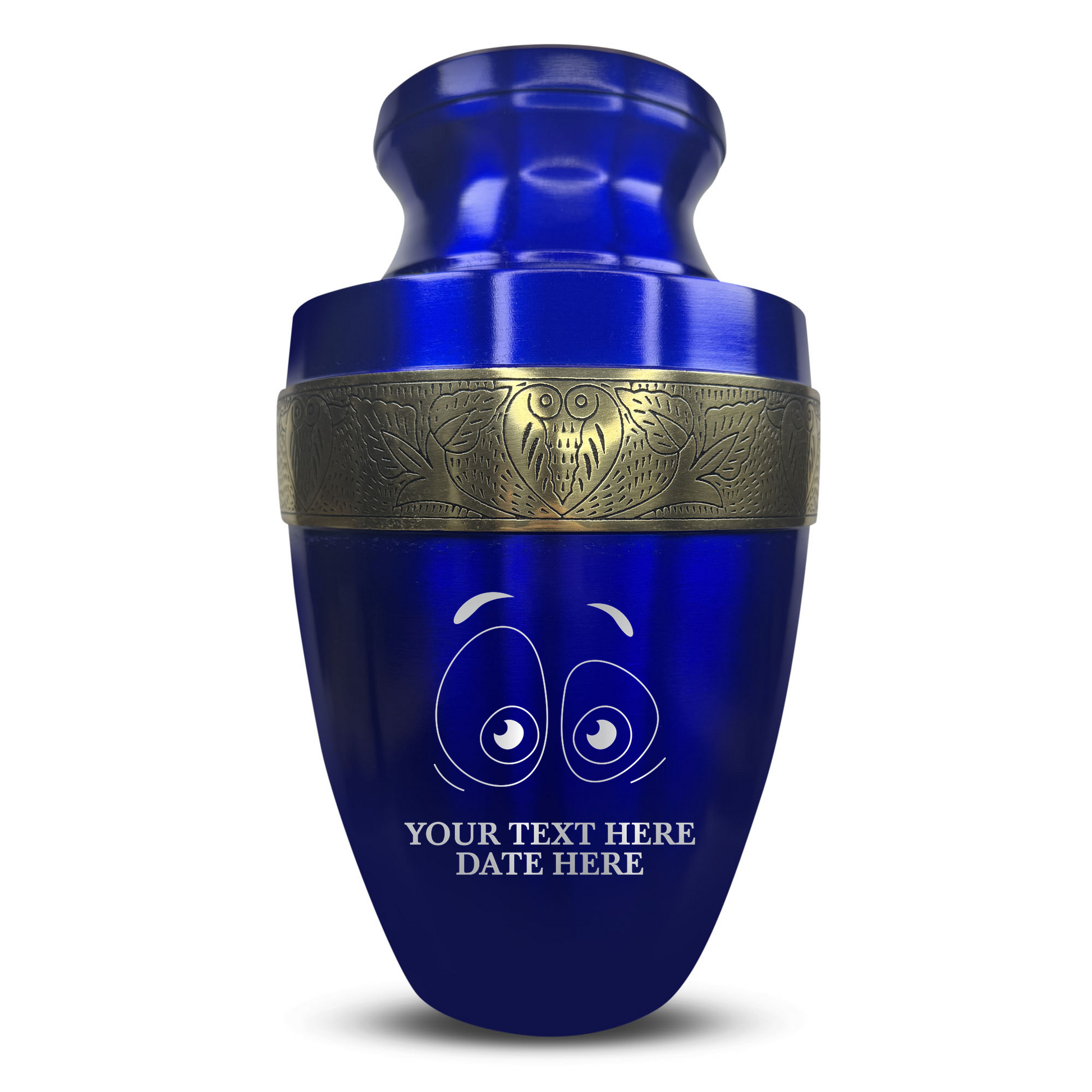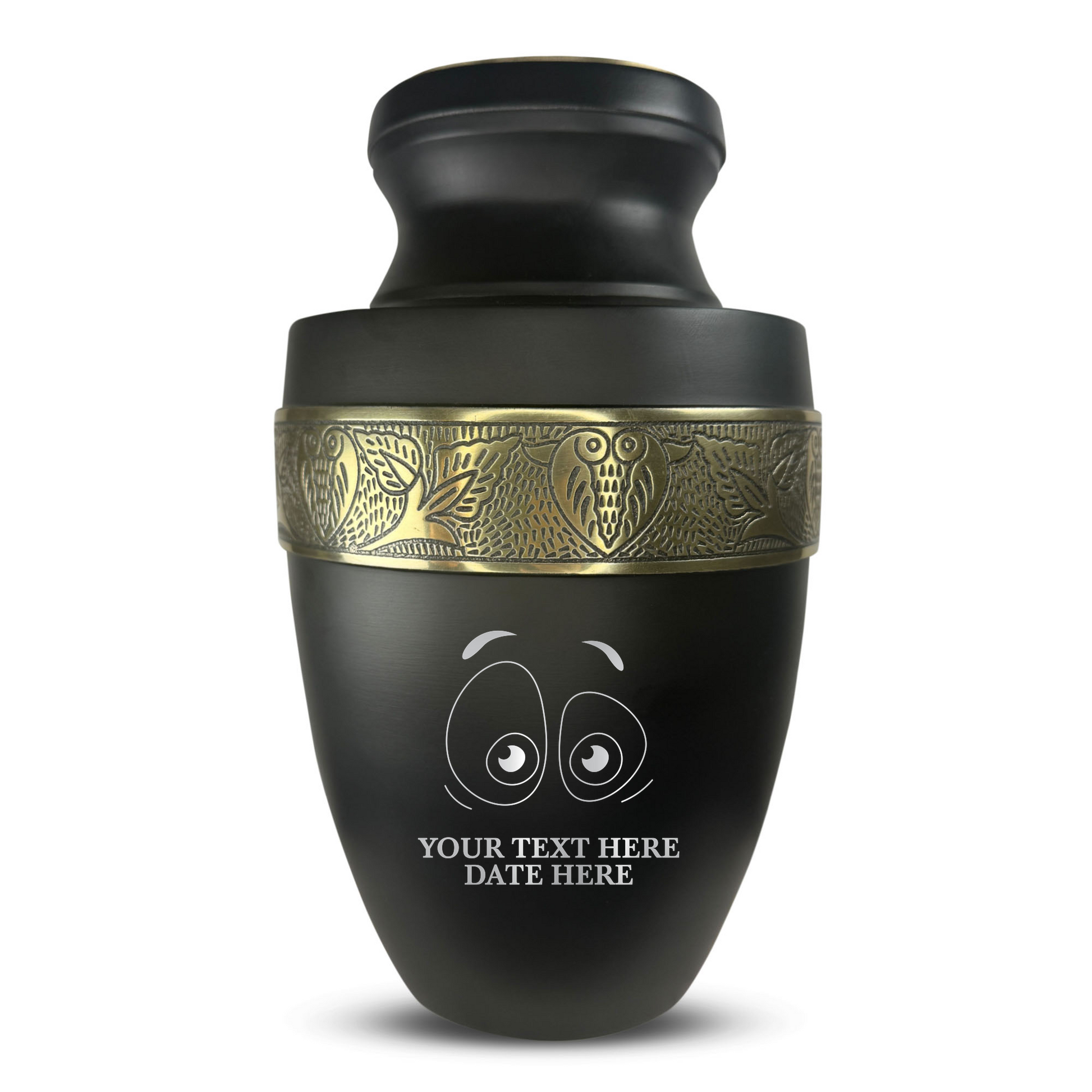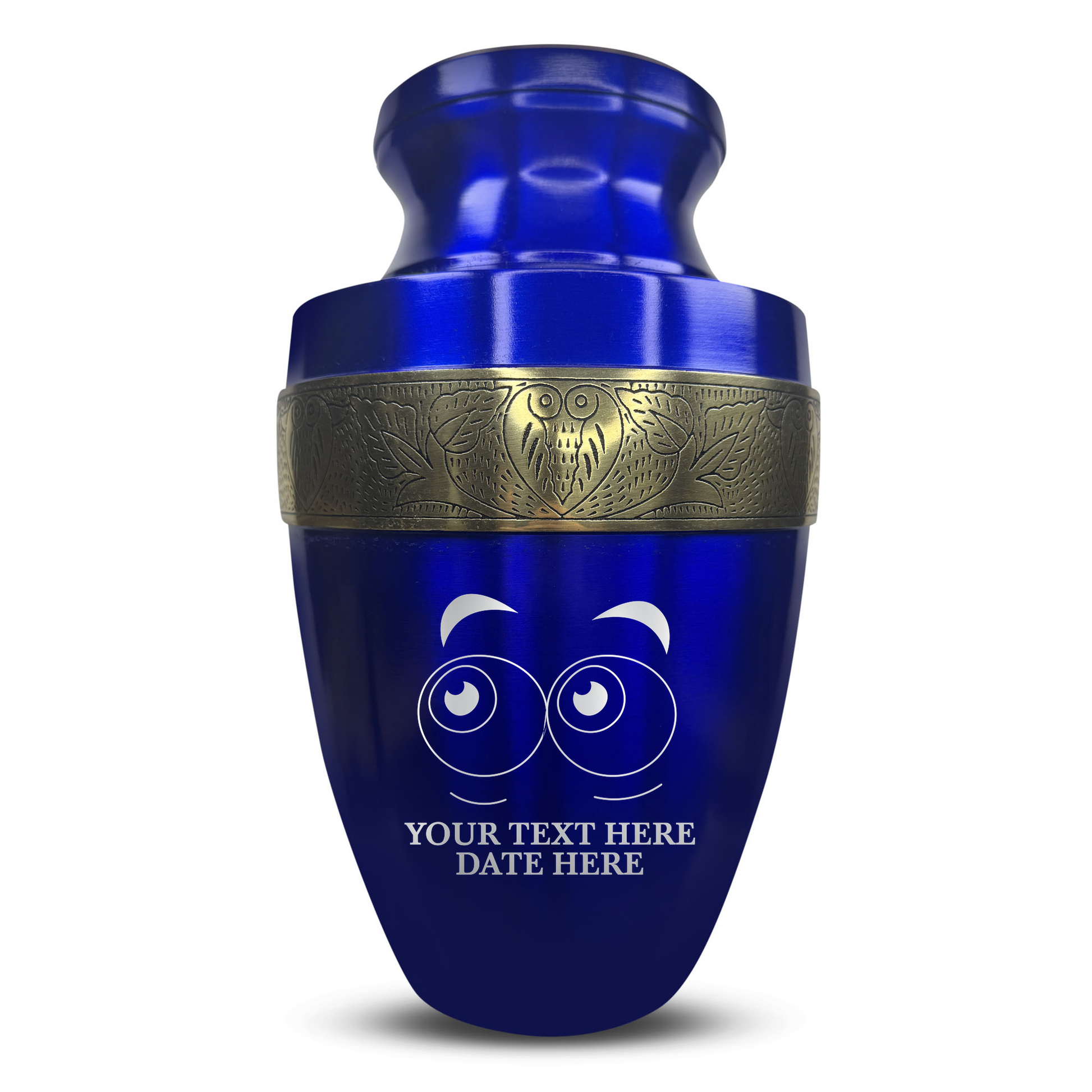 Elite Human Cremation Urn – 200 Cubic Inch – Aluminum with Gold Inlay | Funny Eyes