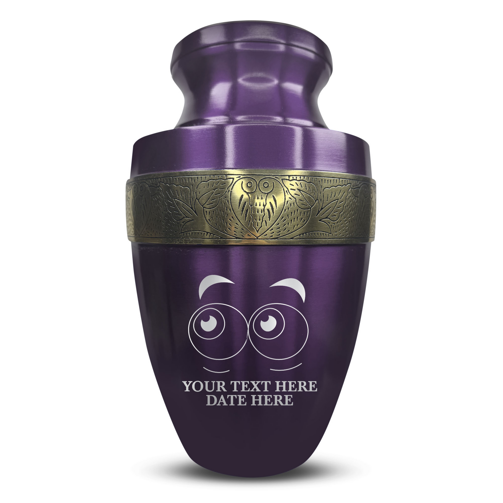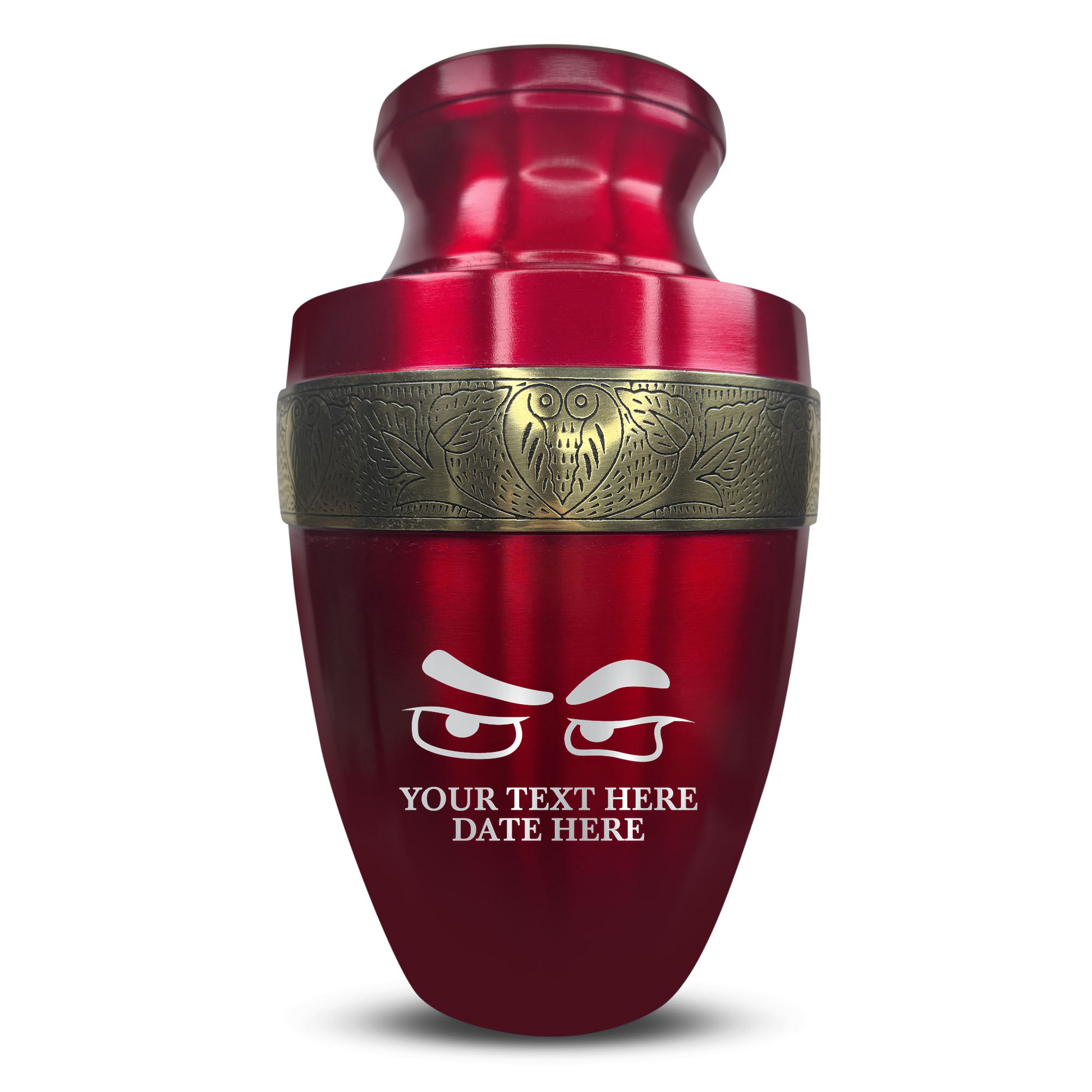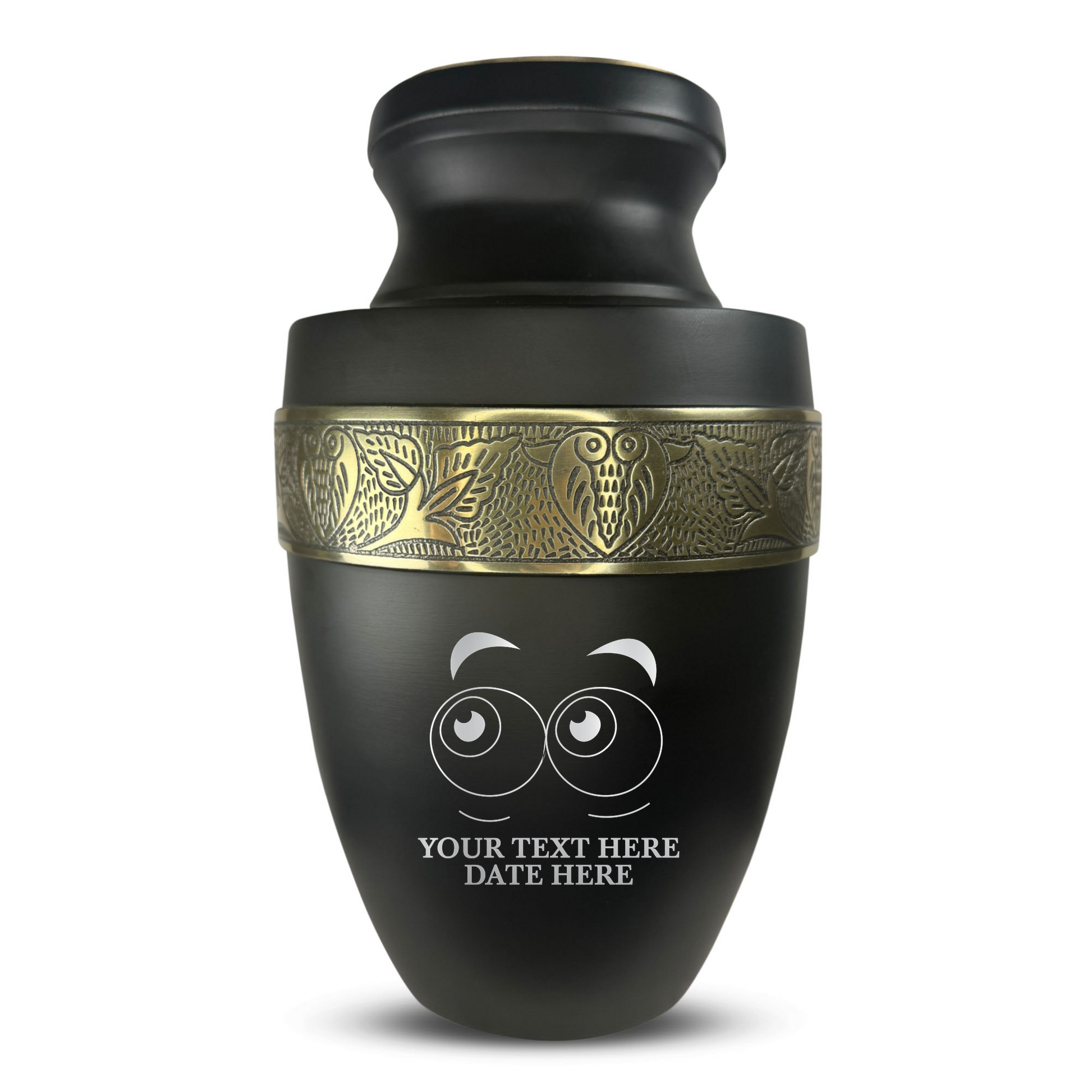 Elite Human Cremation Urn – 200 Cubic Inch – Aluminum with Gold Inlay | Funny Eyes