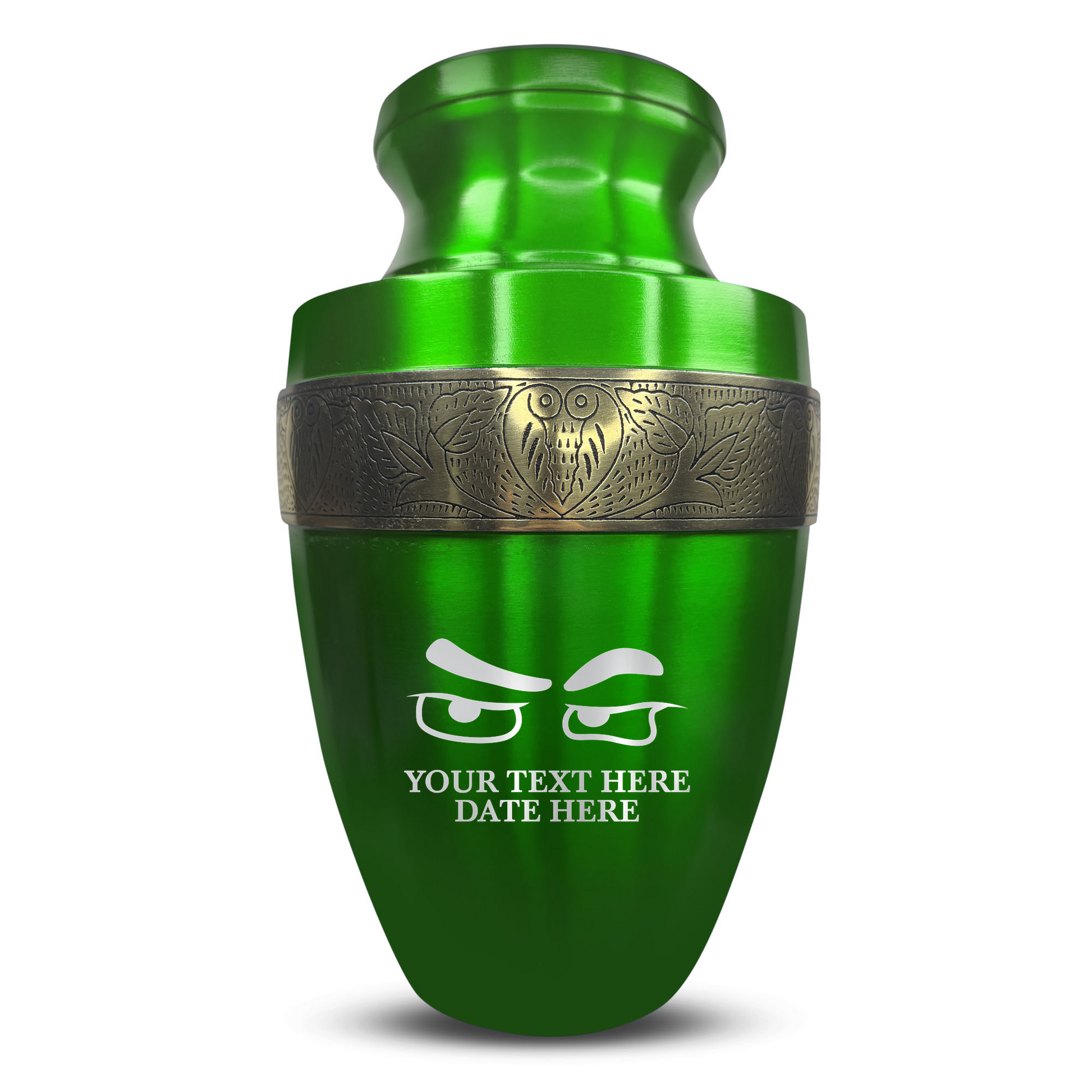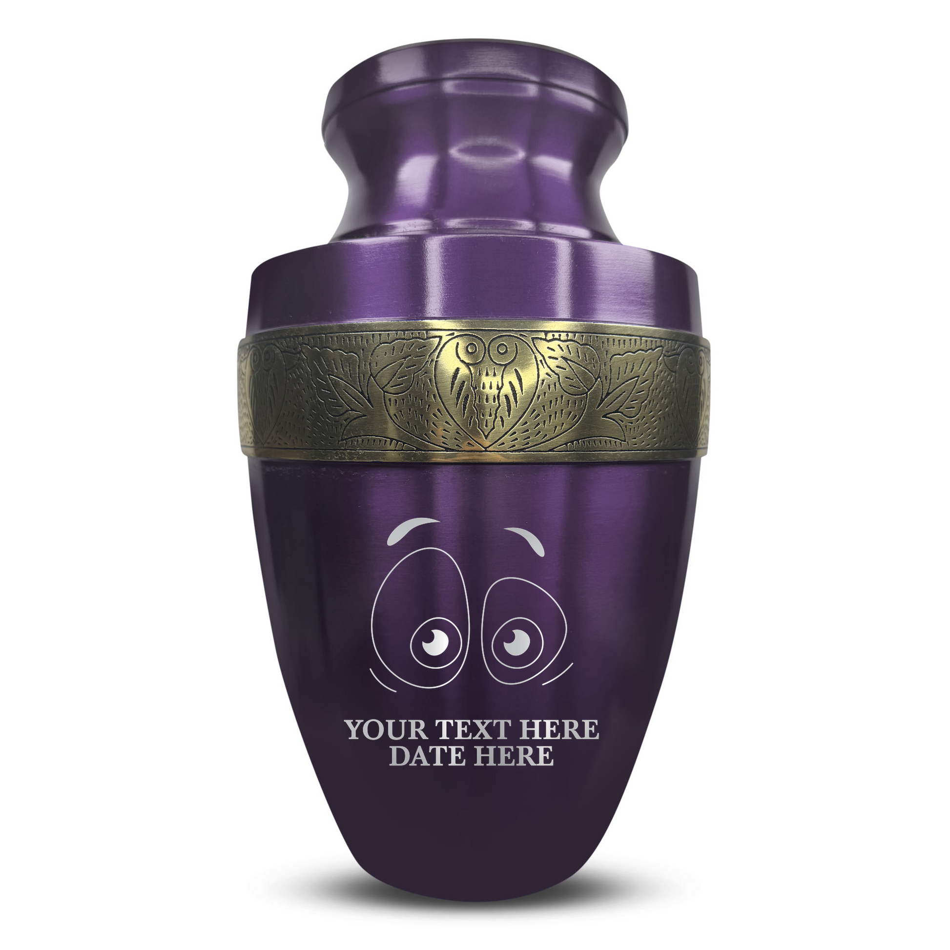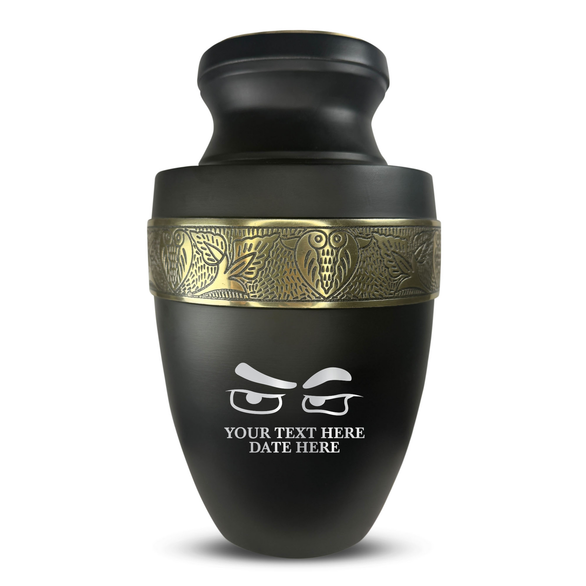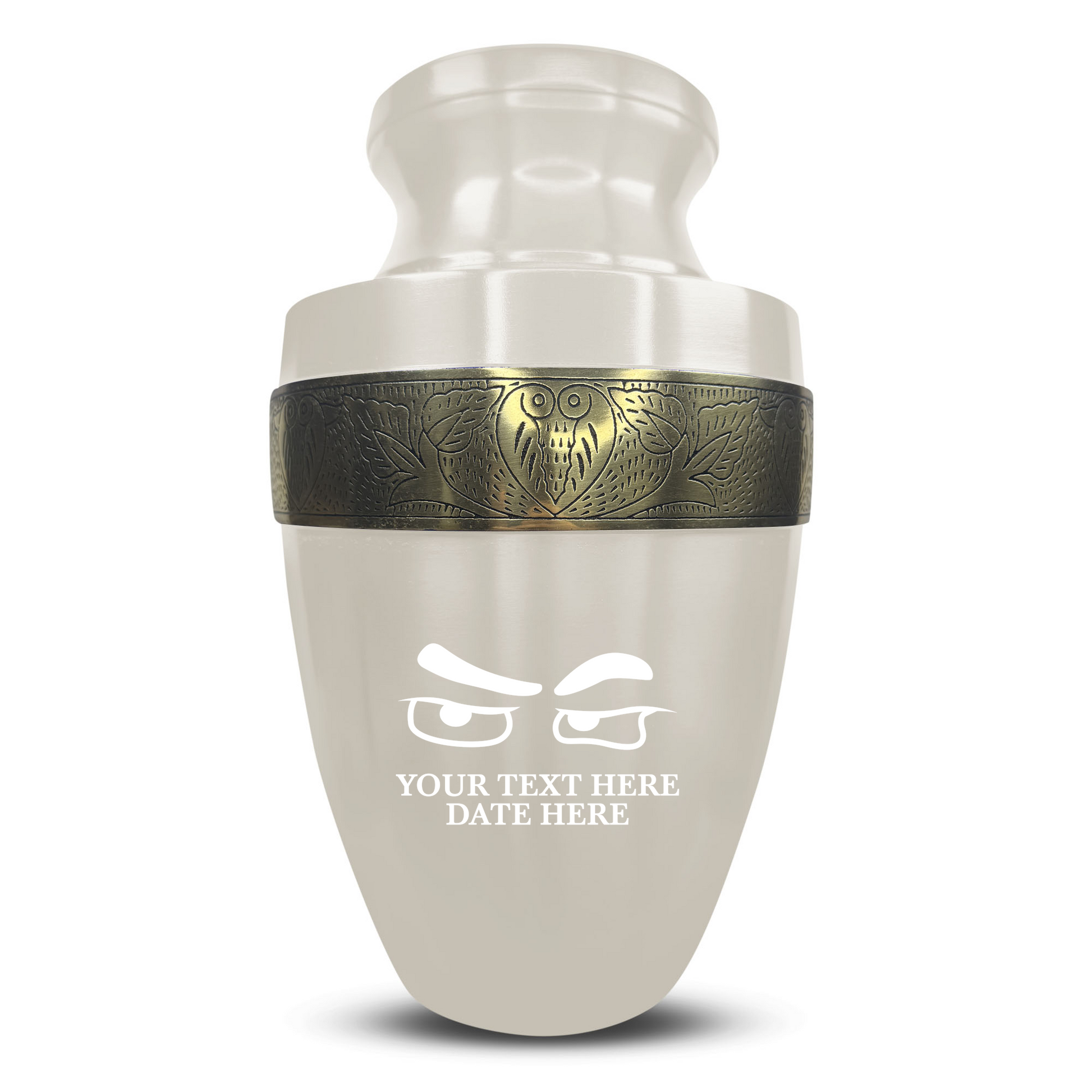 Elite Human Cremation Urn – 200 Cubic Inch – Aluminum with Gold Inlay | Funny Eyes