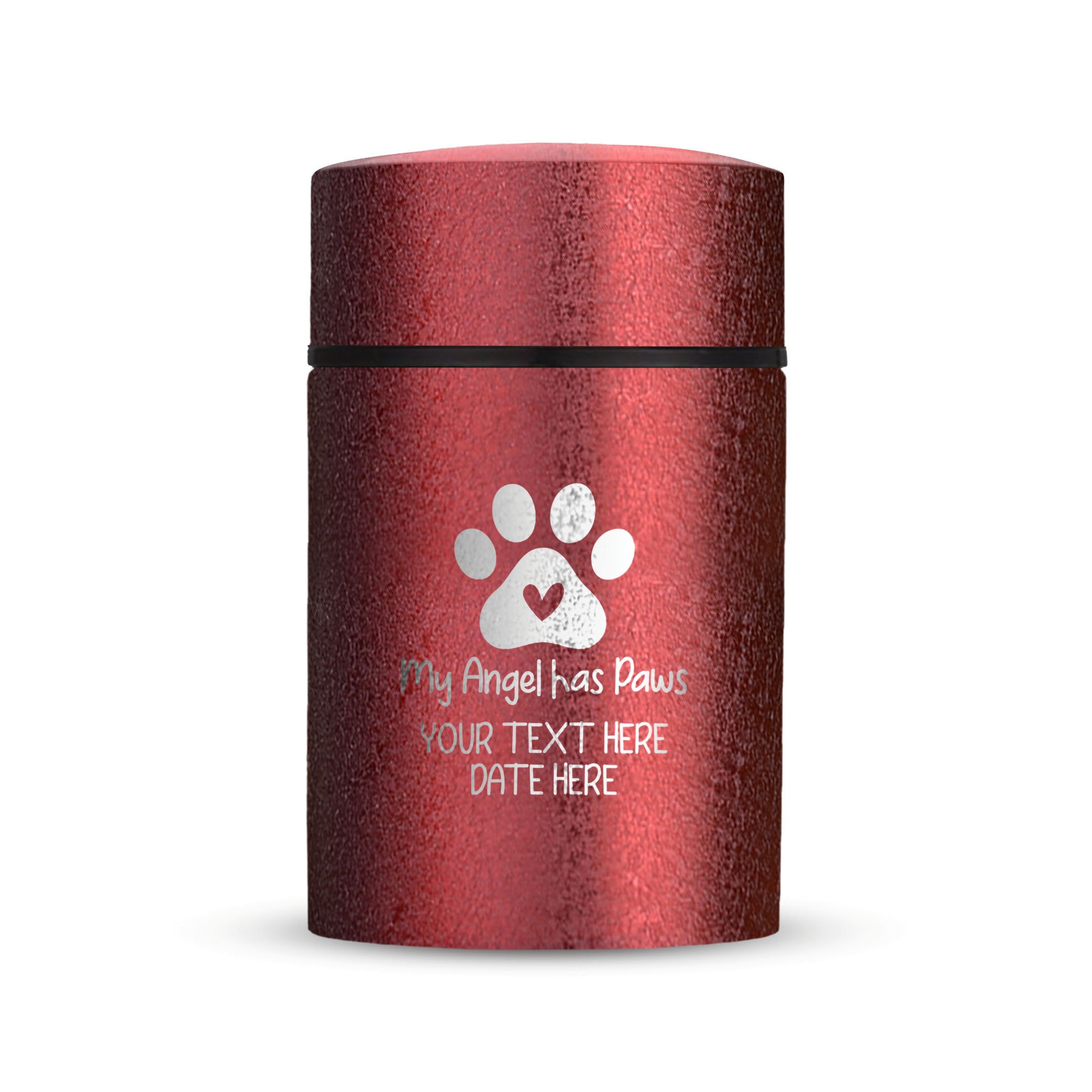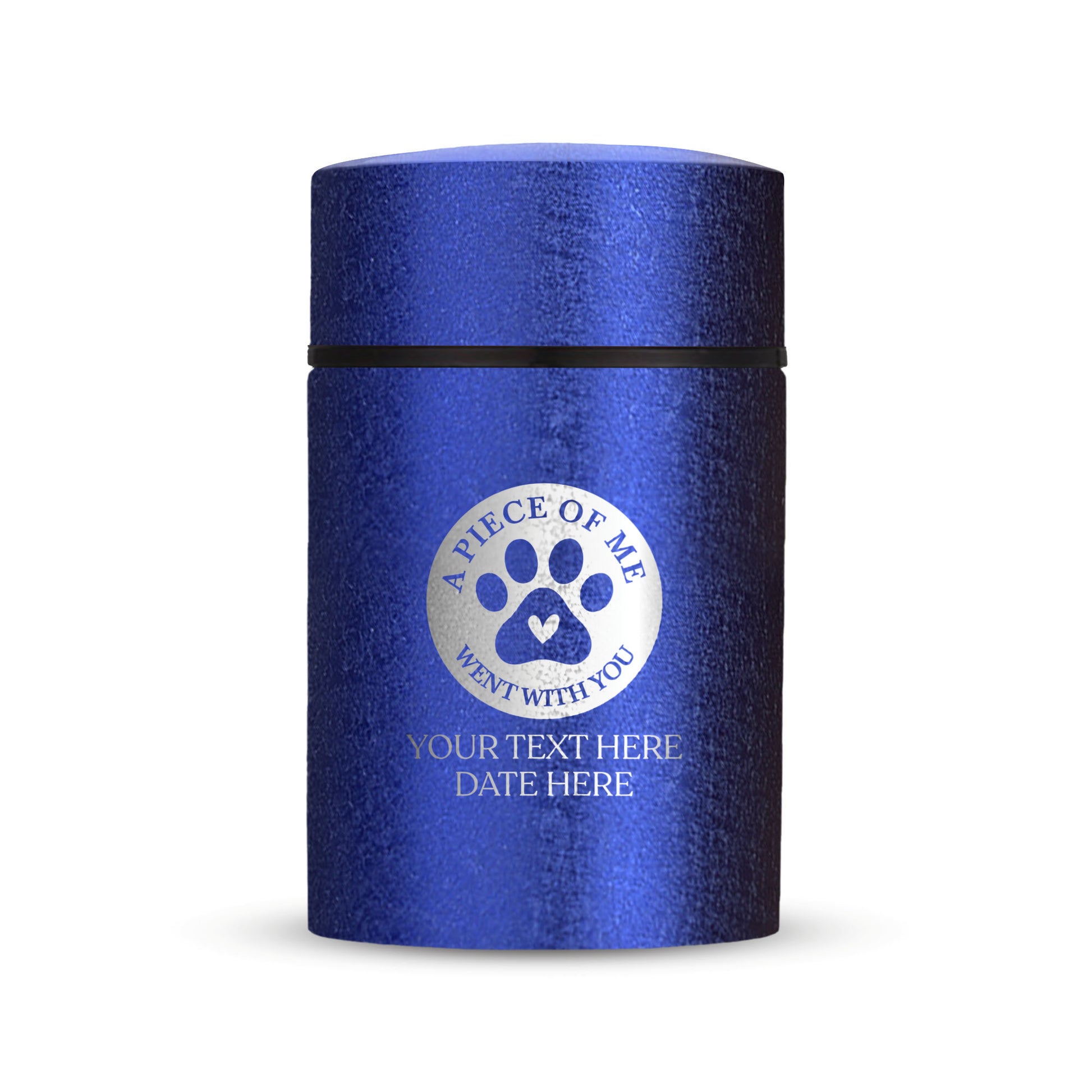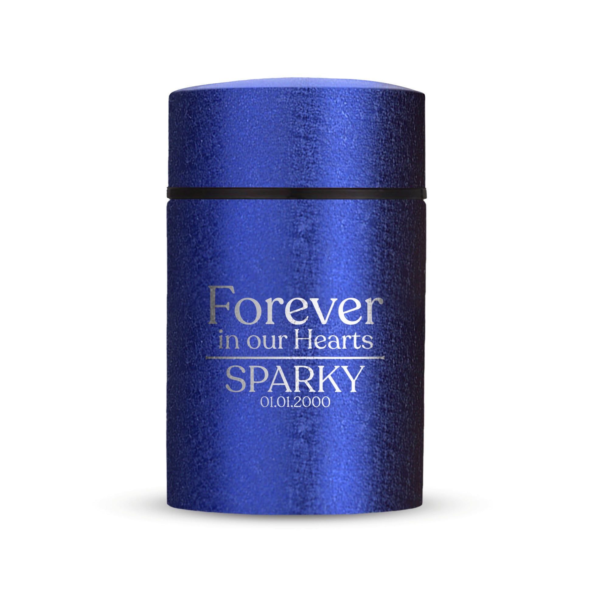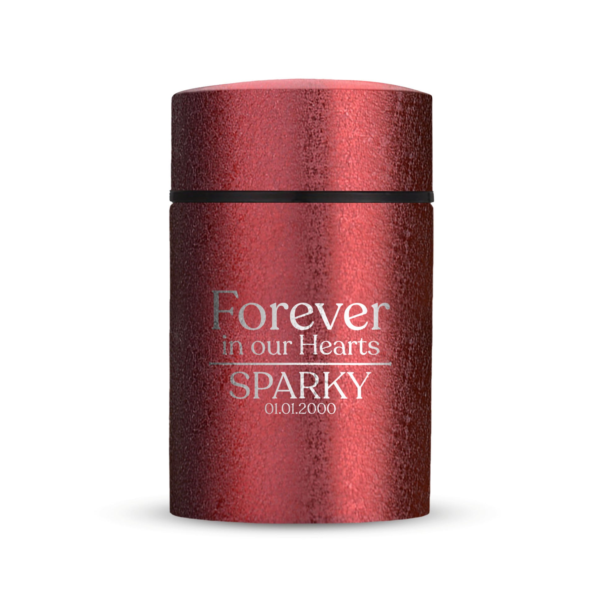 Honor your beloved pet with our Mini Pet Cremation Urn. Made from textured powder coat steel, this urn features an elegant finish. With a 4-8 lb capacity, it serves as a small and intimate keepsake to hold their ashes. Measuring 2" in length, 2" in width, and 3.5" in height, this mini urn offers a compact and discreet way to cherish their memory. It can be engraved and personalized with your pet's name, date and our pre-made dog designs, creating a unique tribute to your beloved pet. The urn is designed to hold a small amount of your pet's ashes, making it a perfect keepsake for those who want to keep their furry friend close by. The compact size makes it easy to display on a shelf, mantle, or any other special place in your home. Crafted with care and attention to detail, our Textured Powder Coat Steel Mini Pet Cremation Urn provides a dignified and meaningful resting place for your cherished companion.