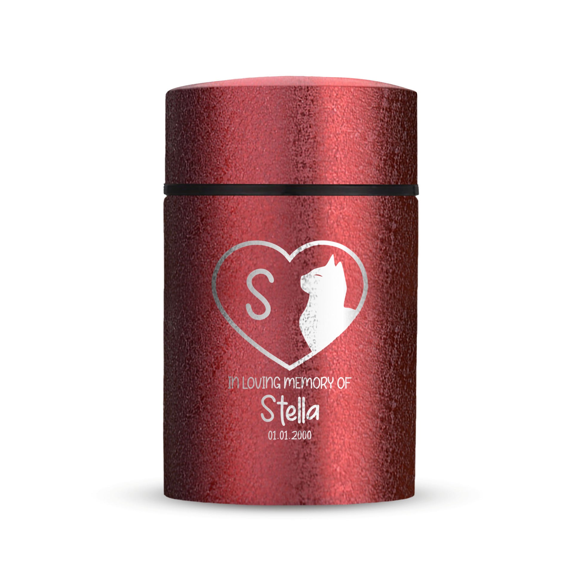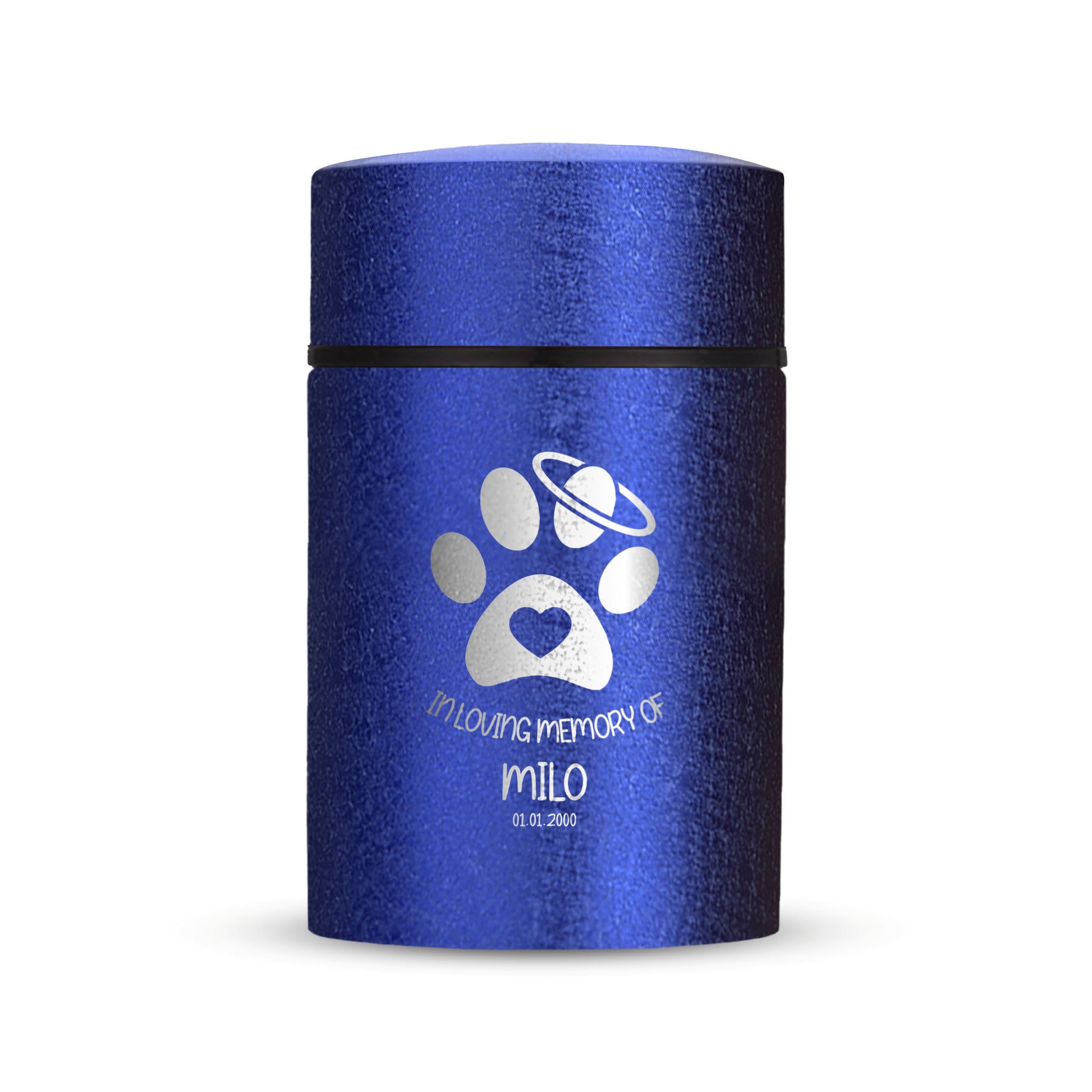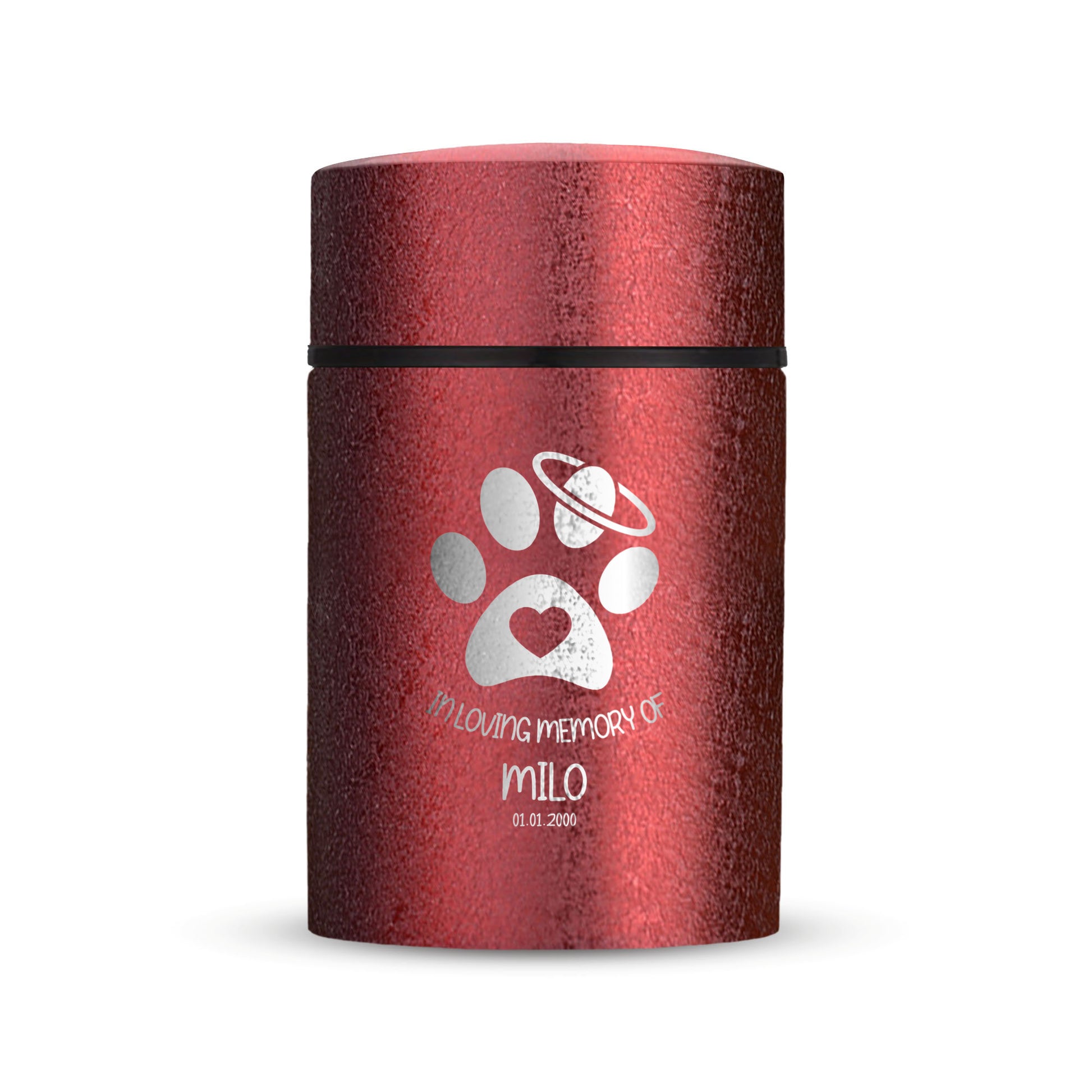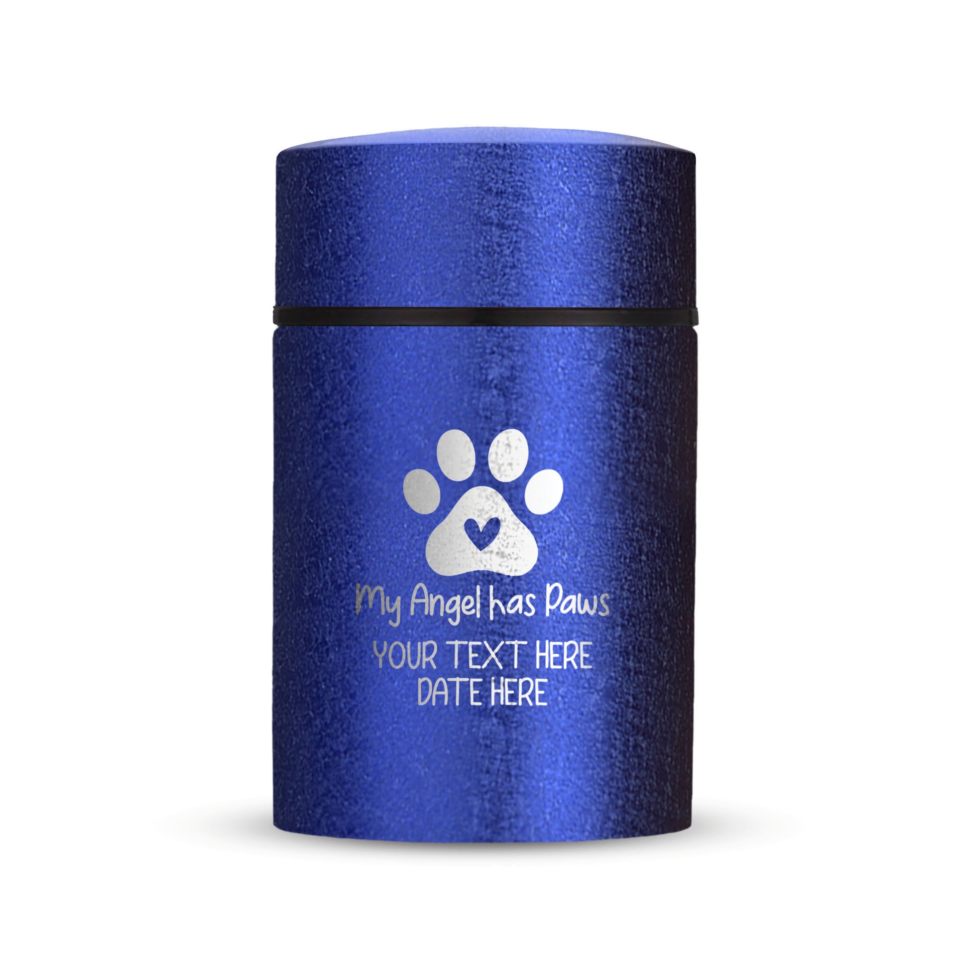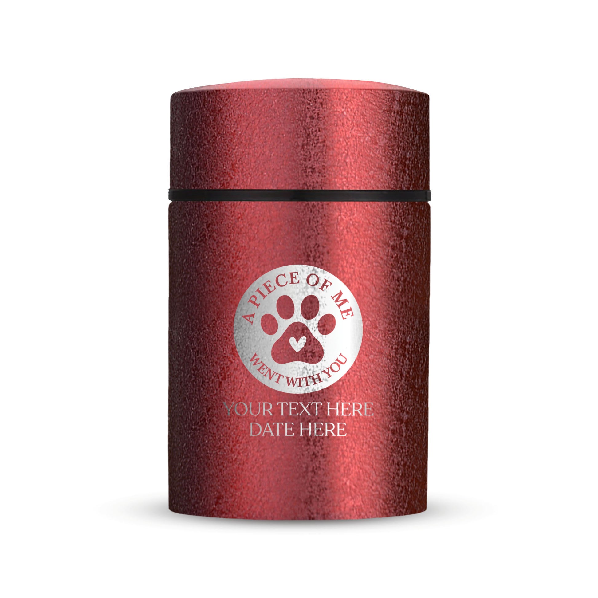 Honor your beloved pet with our Mini Pet Cremation Urn. Made from textured powder coat steel, this urn features an elegant finish. With a 4-8 lb capacity, it serves as a small and intimate keepsake to hold their ashes. Measuring 2" in length, 2" in width, and 3.5" in height, this mini urn offers a compact and discreet way to cherish their memory. It can be engraved and personalized with your pet's name, date and our pre-made dog designs, creating a unique tribute to your beloved pet. The urn is designed to hold a small amount of your pet's ashes, making it a perfect keepsake for those who want to keep their furry friend close by. The compact size makes it easy to display on a shelf, mantle, or any other special place in your home. Crafted with care and attention to detail, our Textured Powder Coat Steel Mini Pet Cremation Urn provides a dignified and meaningful resting place for your cherished companion.