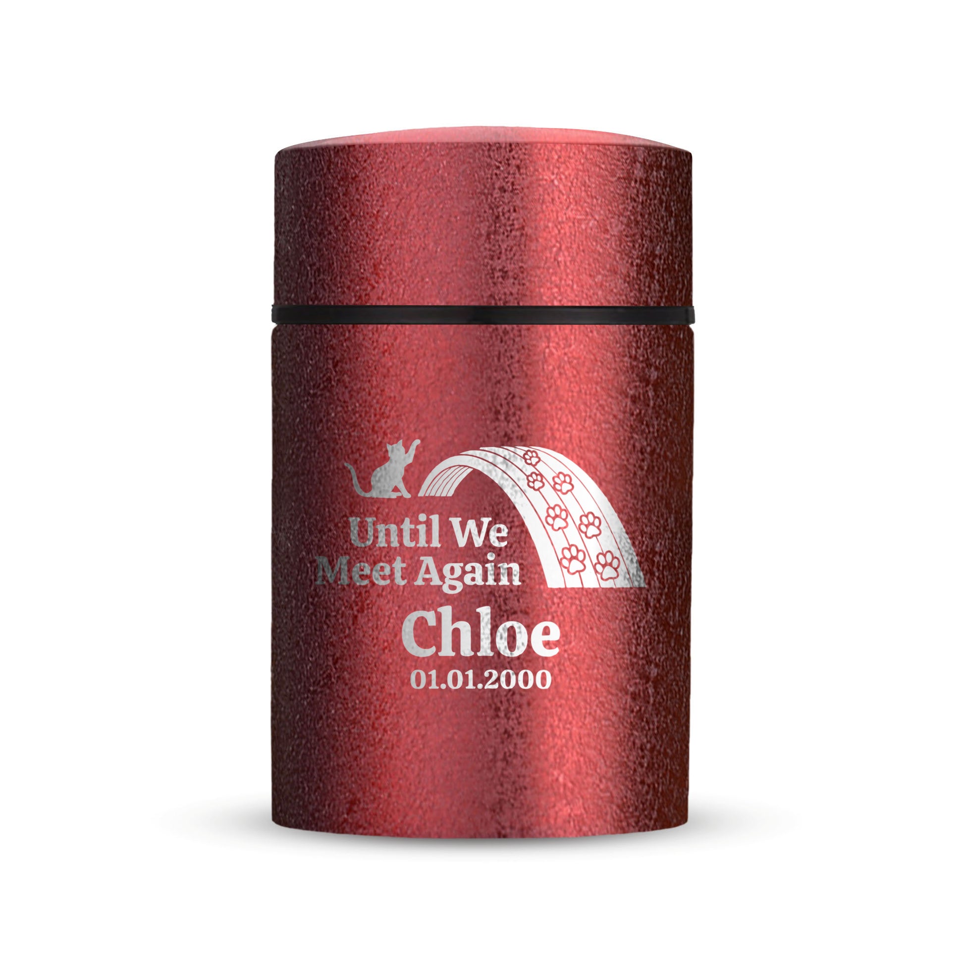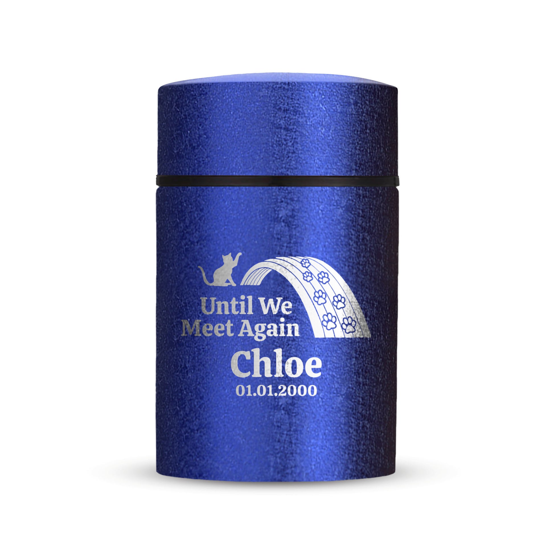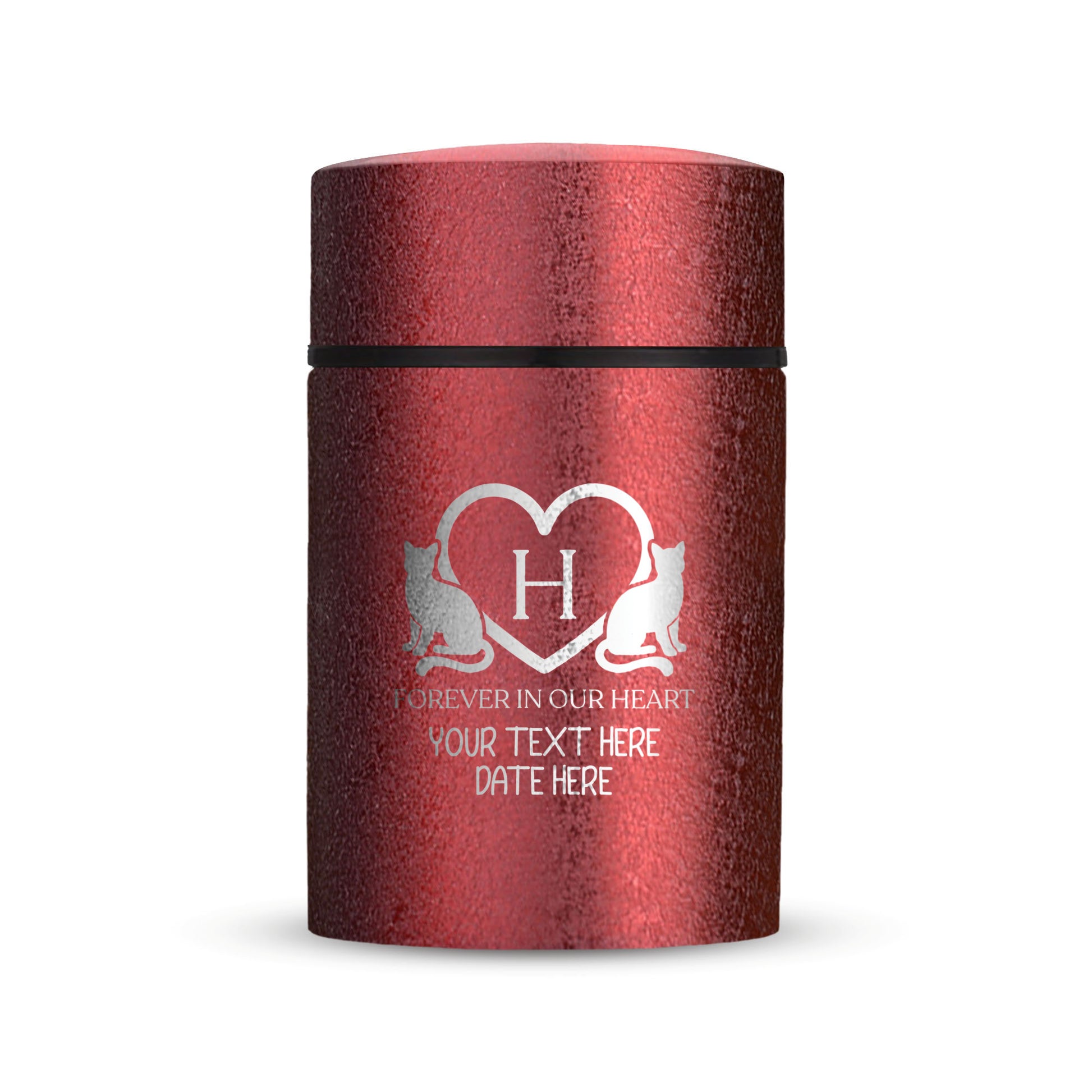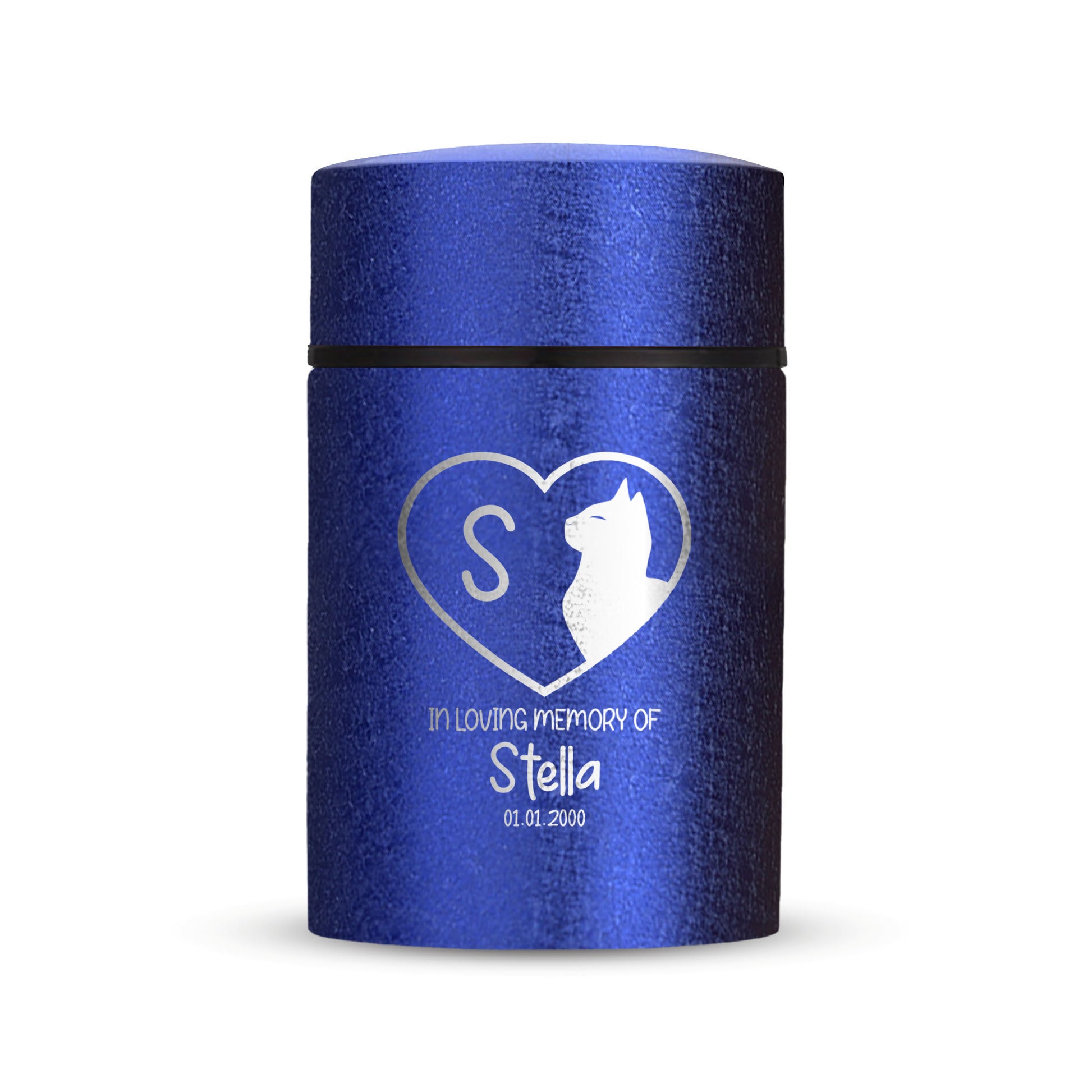 Honor your beloved pet with our Mini Pet Cremation Urn. Made from textured powder coat steel, this urn features an elegant finish. With a 4-8 lb capacity, it serves as a small and intimate keepsake to hold their ashes. Measuring 2" in length, 2" in width, and 3.5" in height, this mini urn offers a compact and discreet way to cherish their memory. It can be engraved and personalized with your pet's name, date and our pre-made dog designs, creating a unique tribute to your beloved pet. The urn is designed to hold a small amount of your pet's ashes, making it a perfect keepsake for those who want to keep their furry friend close by. The compact size makes it easy to display on a shelf, mantle, or any other special place in your home. Crafted with care and attention to detail, our Textured Powder Coat Steel Mini Pet Cremation Urn provides a dignified and meaningful resting place for your cherished companion.
