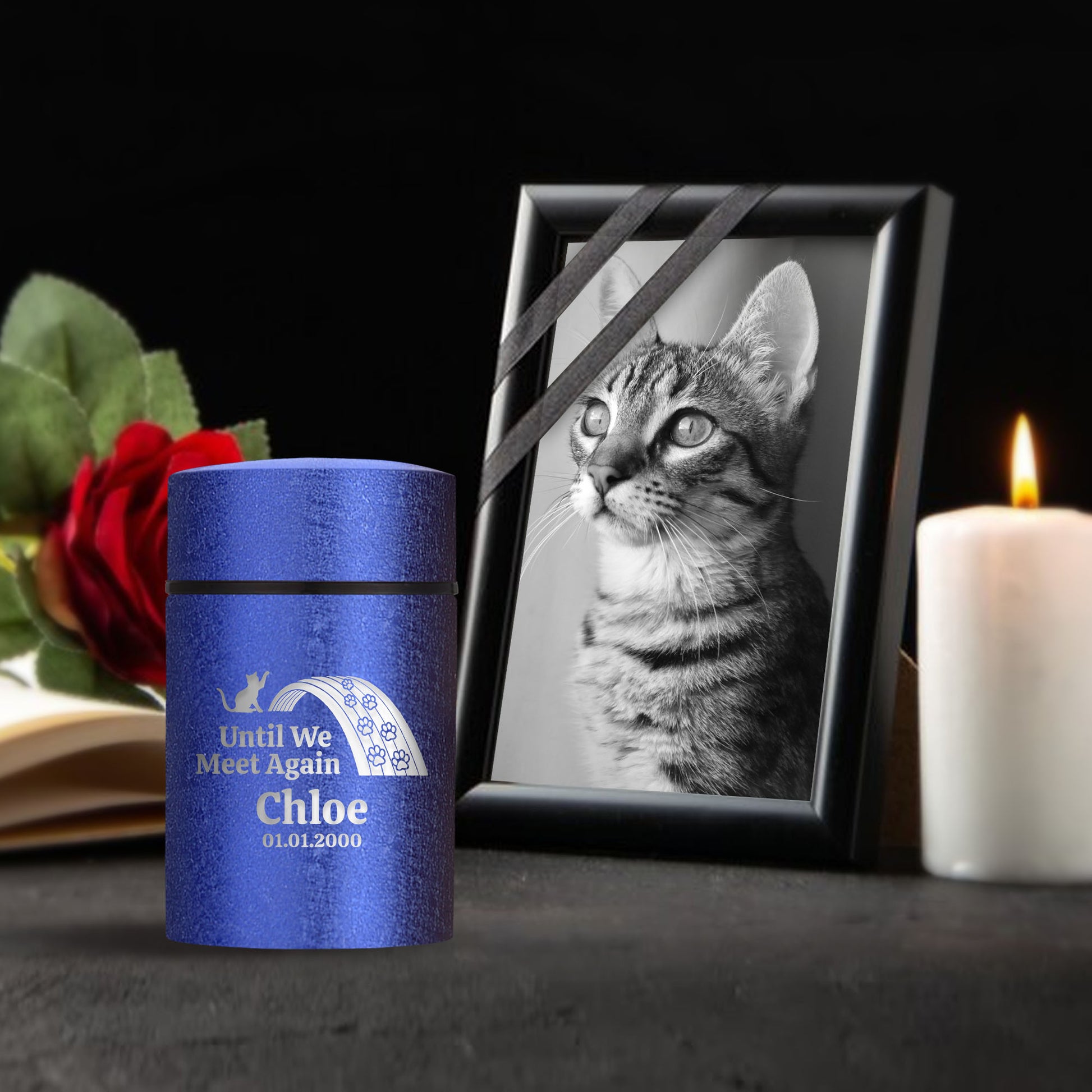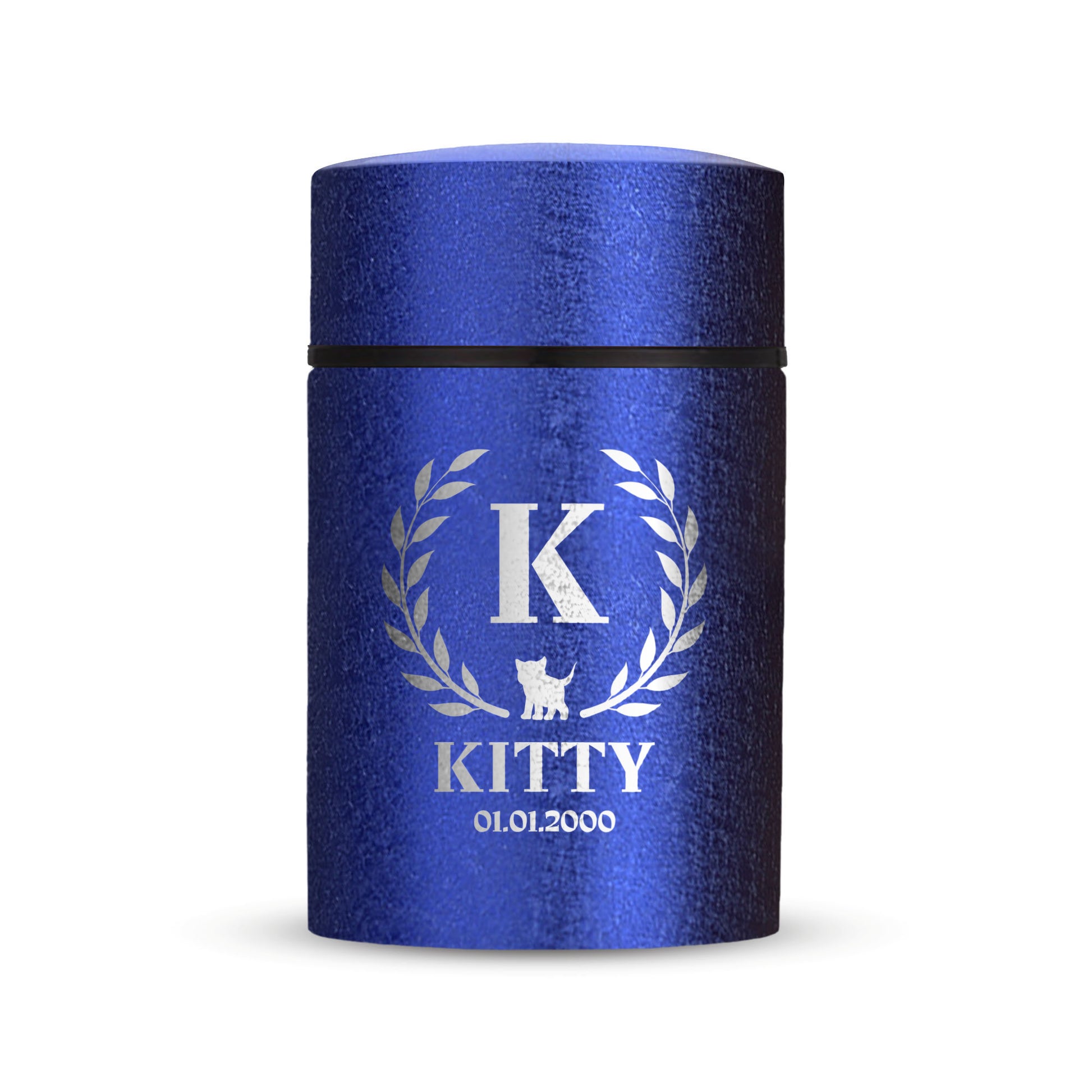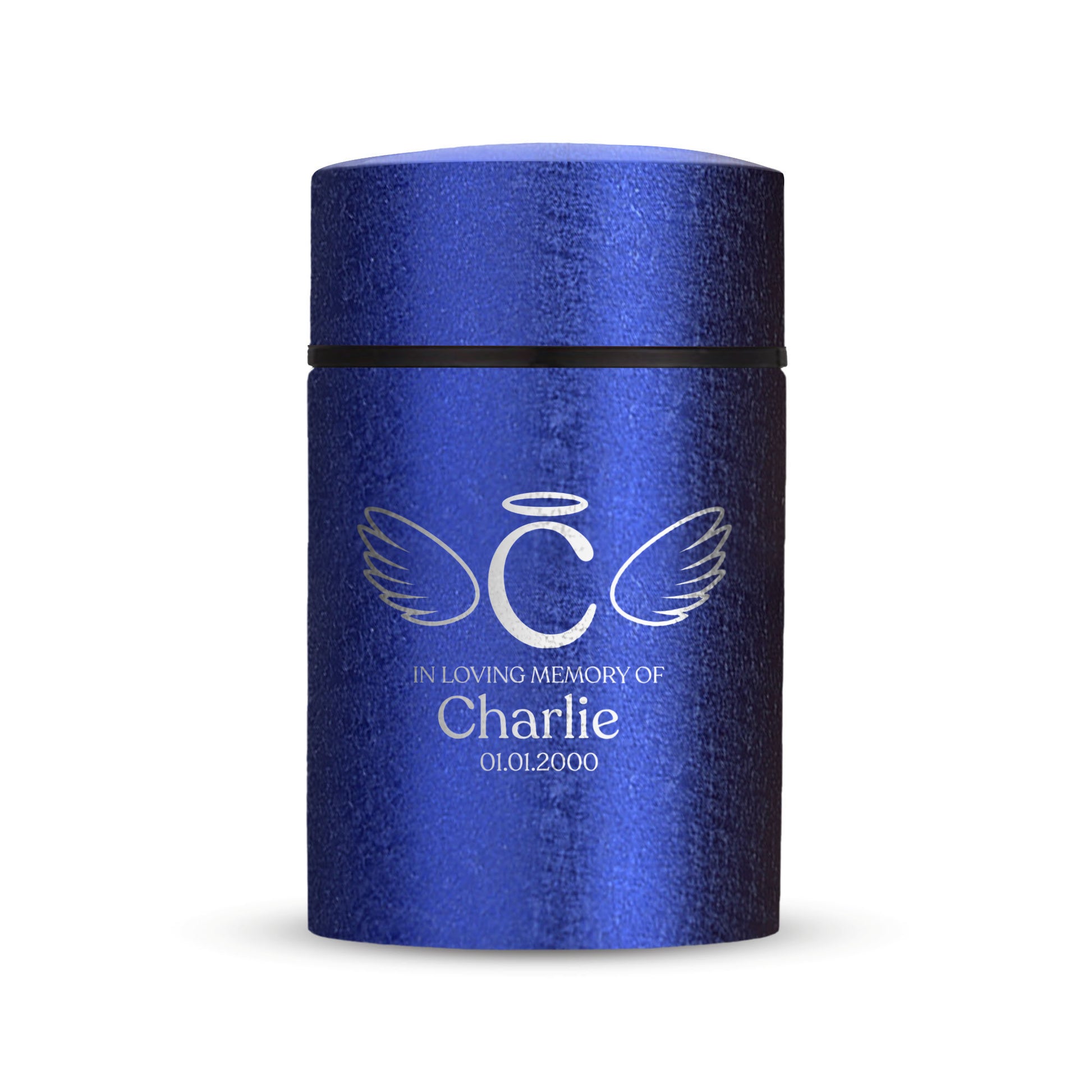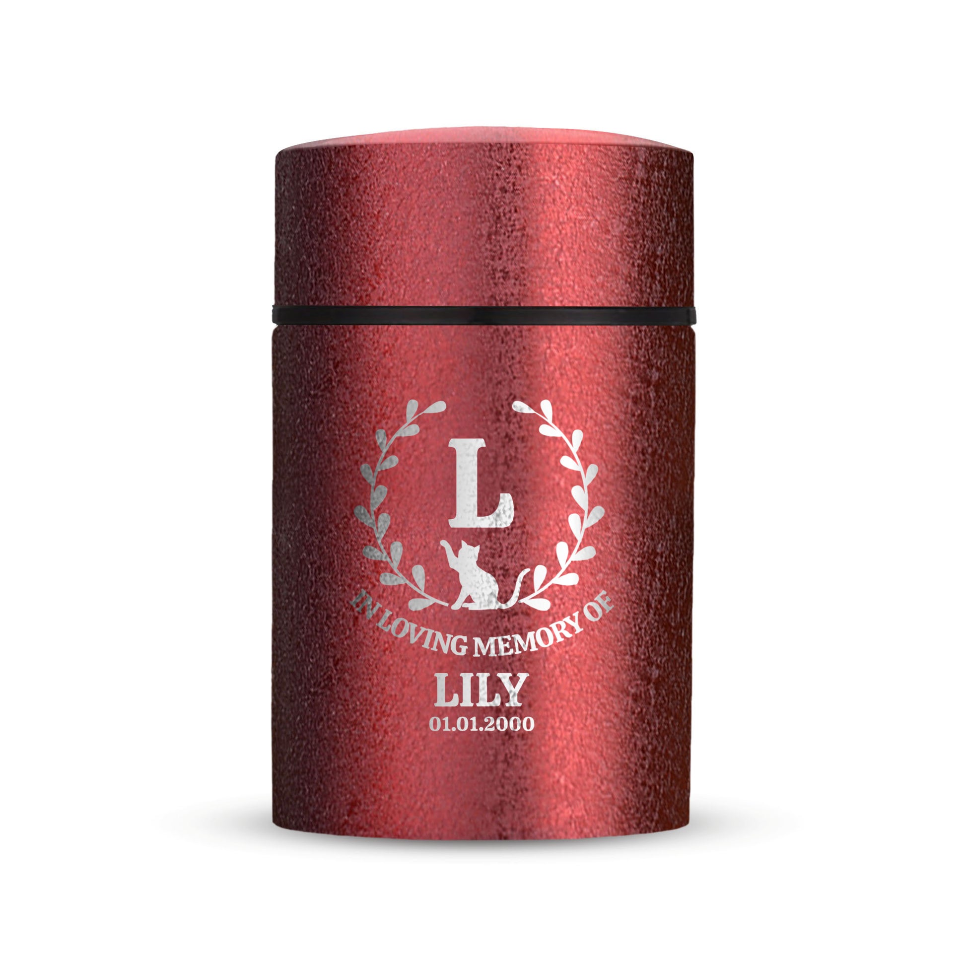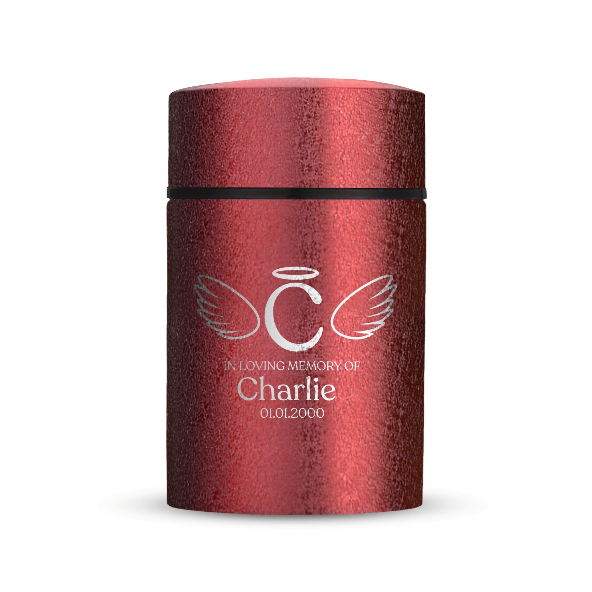 Honor your beloved pet with our Mini Pet Cremation Urn. Made from textured powder coat steel, this urn features an elegant finish. With a 4-8 lb capacity, it serves as a small and intimate keepsake to hold their ashes. Measuring 2" in length, 2" in width, and 3.5" in height, this mini urn offers a compact and discreet way to cherish their memory. It can be engraved and personalized with your pet's name, date and our pre-made dog designs, creating a unique tribute to your beloved pet. The urn is designed to hold a small amount of your pet's ashes, making it a perfect keepsake for those who want to keep their furry friend close by. The compact size makes it easy to display on a shelf, mantle, or any other special place in your home. Crafted with care and attention to detail, our Textured Powder Coat Steel Mini Pet Cremation Urn provides a dignified and meaningful resting place for your cherished companion.