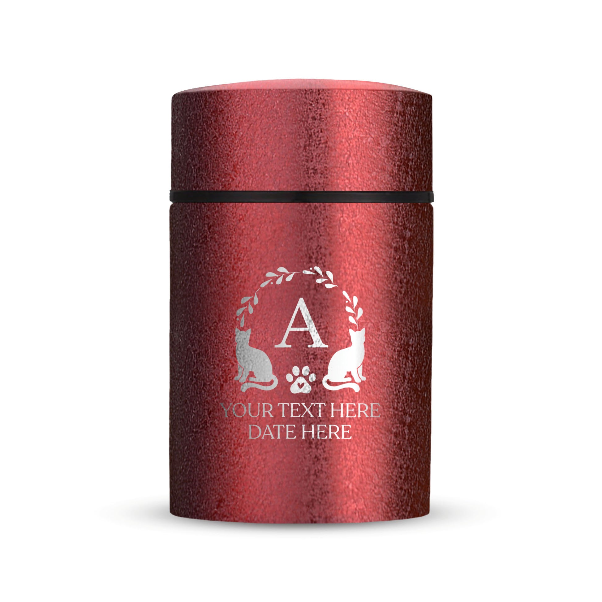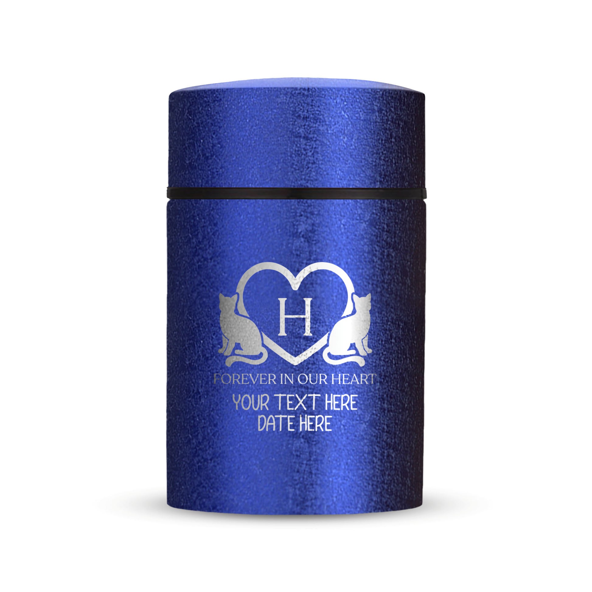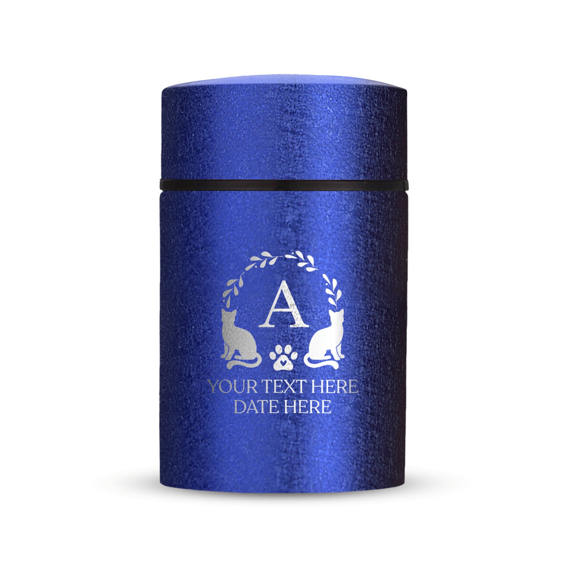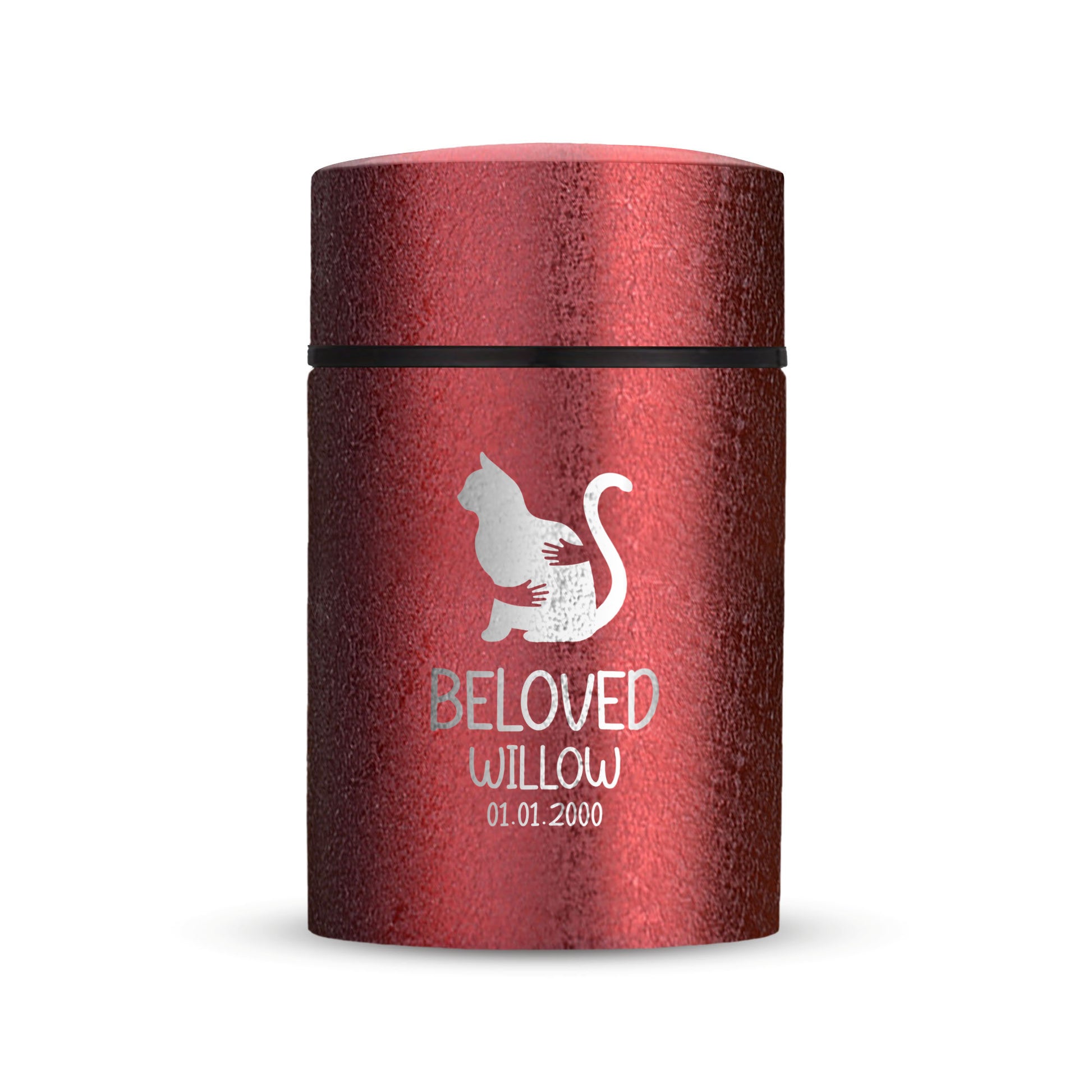 Custom Compact Mini Keepsake Cat Urn - Stainless Steel - Textured Finish - 8 Cubic Inch