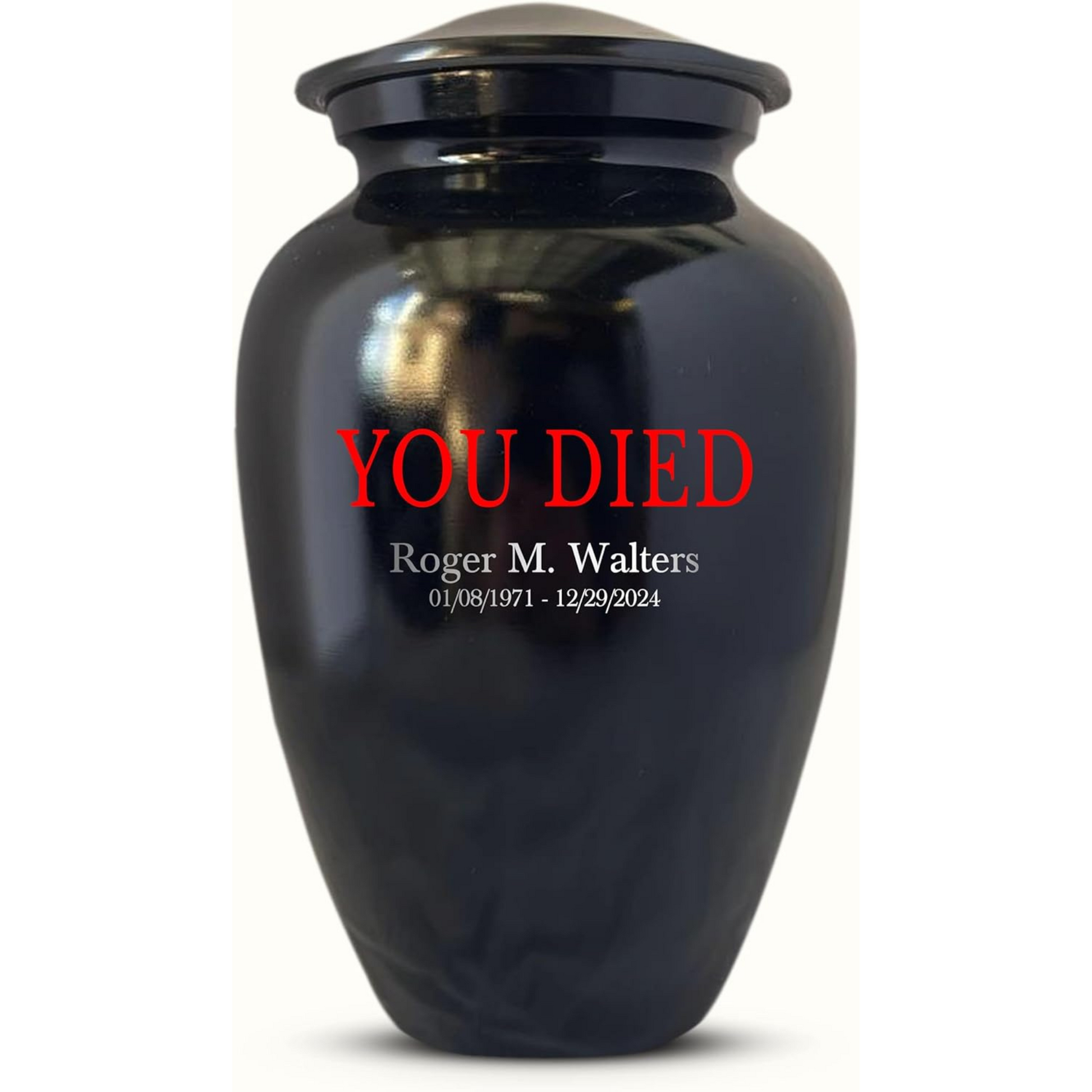 Polished Extra Large Human Cremation Urn 200-350 Cubic Inch – Engraved Aluminum | Funny Gamer