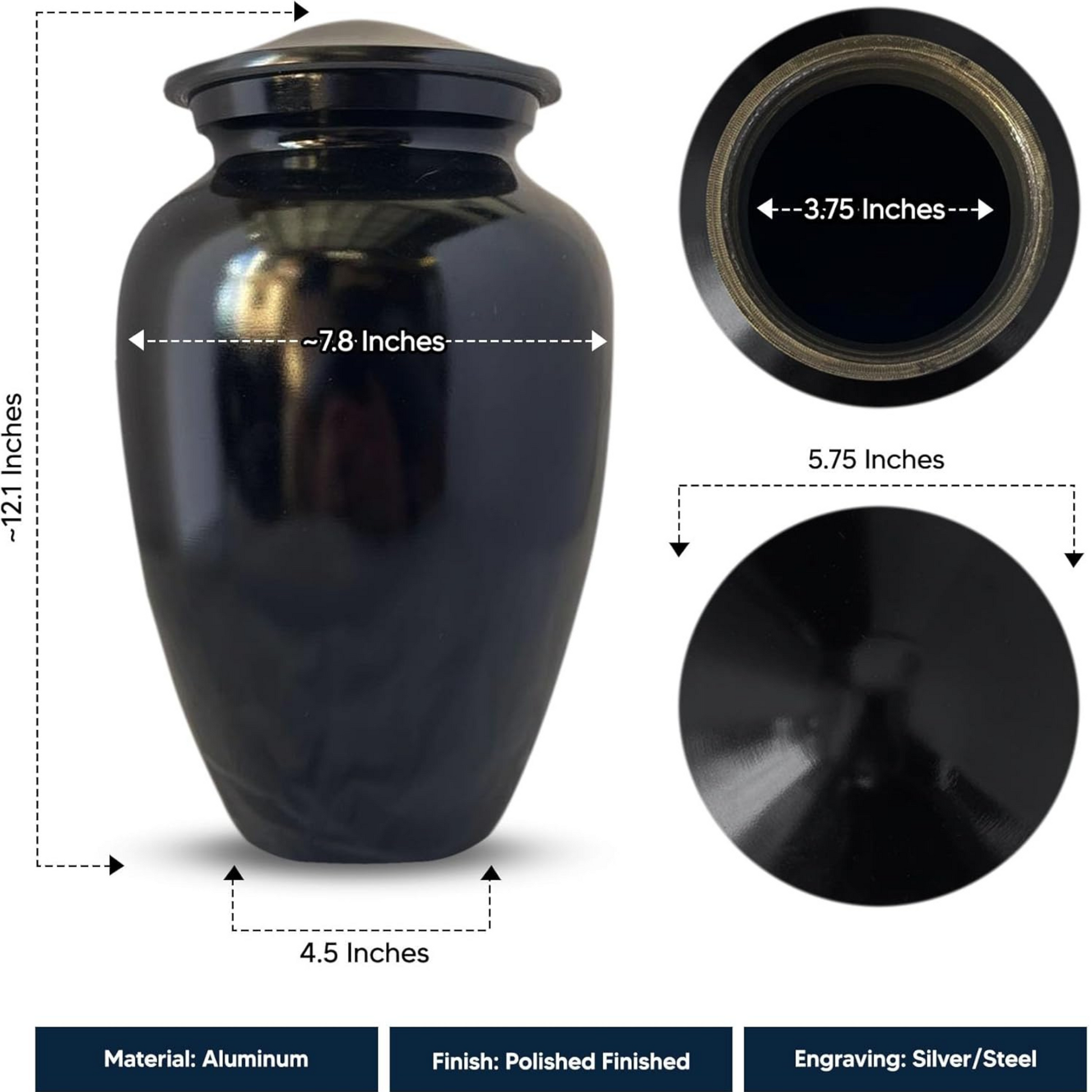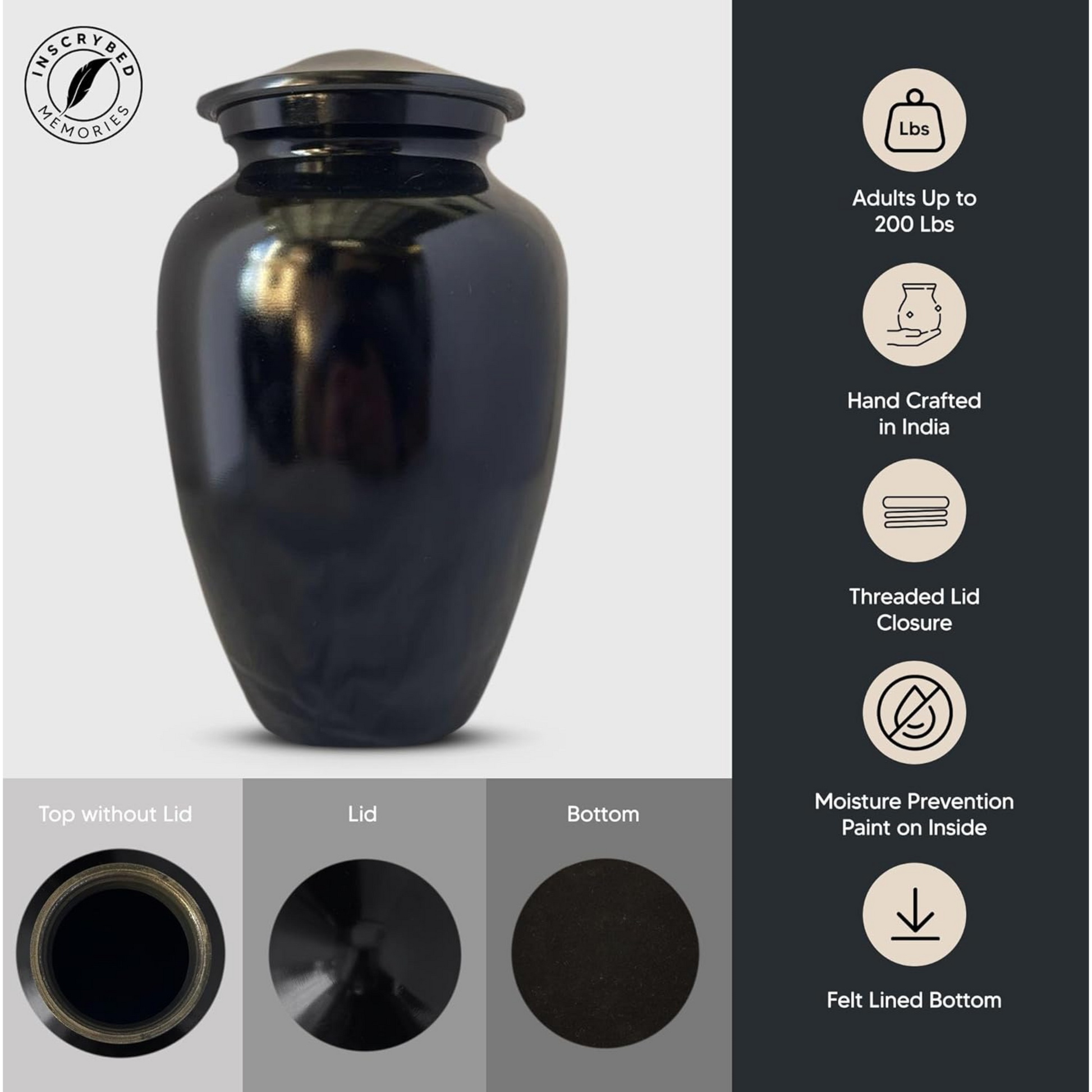 Handcrafted with attention to detail, the urn features a sleek black finish, a secure threaded lid, and a felt-lined base to protect surfaces. The interior includes a protective coating that helps prevent moisture and maintain the integrity of the urn over time. - SIZE & CAPACITY: